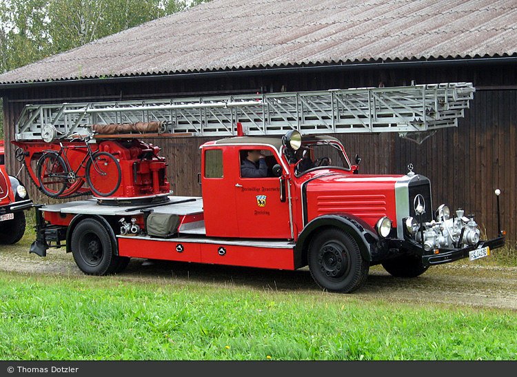KL 26 mit Vorbaupumpe FP 15/8, Mercedes-Benz LD 3750, Aufbau Metz, 1939, beschafft von der FF Freising, Ursprungslackierung Dunkelgrün, im Einsatz bis 1985, danach restauriert und als Museumsfahrzeug erhalten. Warum die Drehleiter häufig als KL 27 und nicht als KL 26 bezeichnet wird, ist unklar. Ebenso gibt es Quellen, die die Pumpe als FP 25/8 angeben.