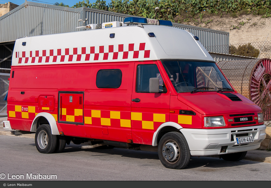 Leon Maibaum fotografierte auf Malta diesen Iveco Daily 35-10 mit Eigenausbau. An der Delimara Fire Station des Malta Civil Protection Departments, wird das Fahrzeug als Gerätewagen Gefahrgut eingesetzt.