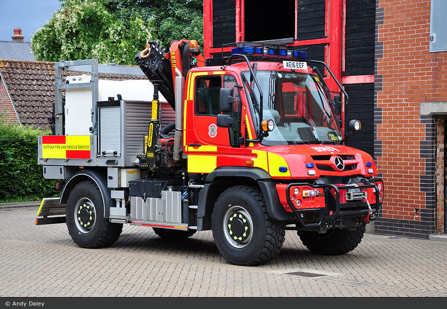 Aus dem Vereinten Königreich, genauer aus Suffolk County stammt dieser, von Andy Daley abgelichtete Unimog U423. An der Bury St. Edmunds Fire Station wird das Fahrzeug, das einen Aufbau von John Dennis Coachbuilders besitzt, als Mehrzweckfahrzeug eingesetzt.