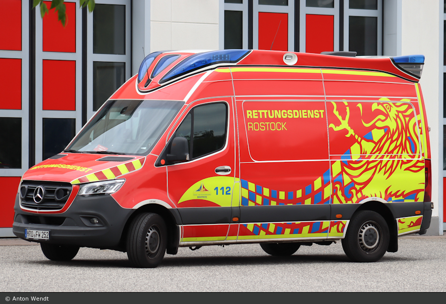 Die Berufsfeuerwehr Rostock stellte 2024 diesen Rettungswagen auf Mercedes-Benz Sprinter in Dienst. Der Ausbau wurde durch Ambulanz Mobile durchgeführt. Der Datensatz zu diesem RTW wurde durch Anton Wendt erstellt.
