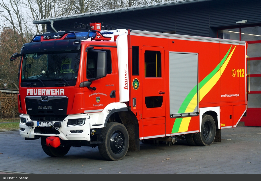 Einen Gerätewagen Logistik 2 liefert die Firma Lentner im Jahr 2024 an die FF Trappenkamp in Schleswig-Holstein aus. Als Fahrgestell dient ein MAN TGM 13.290 mit Allrad Fahrgestell. Martin Brose lichtete das Logistik Fahrzeug ab.