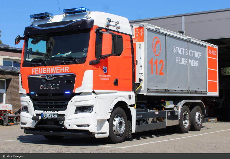 Unter dem Funkruf "Florian Bottrop 01 WLF 01" läuft seit 2024 dieser Wechsellader bei der Berufsfeuerwehr Bottrop. Durch unseren User Max Berger wurde das Fahrzeug, ein MAN TGX 26.480, fotografiert und in die Galerie geladen.