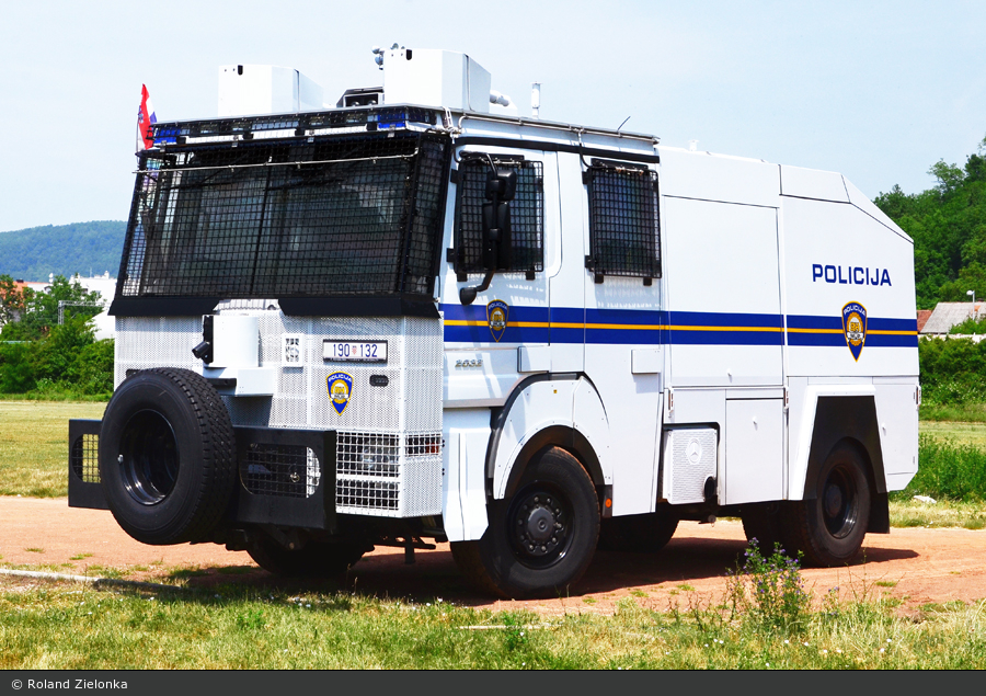 Anfangen wollen wir mit einem Foto unseres Users Roland Zielonka. Er bekam diesen kroatischen Wasserwerferkraftwagen (WaWe) der Interventionseinheit der Polizei (Interventna jedinica policije) auf einem Actros 2032 AK mit Rosenbauer Aufbau vor die Linse. Stationiert ist das Fahrzeug in der Hauptstadt Zagreb.