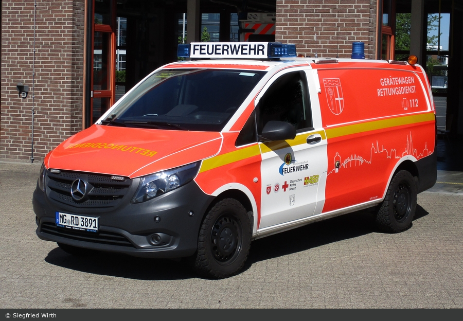 Von einem Besuch bei der Berufsfeuerwehr Mönchengladbach brachte Siegfried Wirth diesen Gerätewagen Rettungsdienst mit. Der von Binz ausgebaute Mercedes-Benz Vito steht auf der Feuer- und Rettungswache 2.