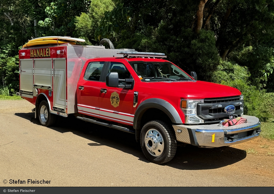 Stefan Fleischer konnte diesen Brush Truck des Kaua´i Fire Department auf Hawaii ablichten. Der Ford F-550 mit Rosenbauer Aufbau ist auf der Feuerwache in Hanalei stationiert.