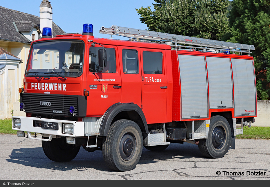 Dieses ehemalige Tanklöschfahrzeug TLFA 2000 der FF Thaur zeigte uns Thomas Dotzler. Der Iveco 80-16 AW wurde 1986 von Rosenbauer aufgebaut.