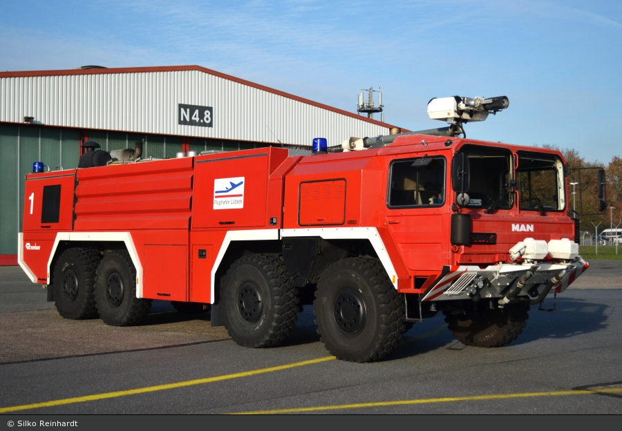 Bei der Flughafenfeuerwehr Lübeck-Blankensee konnte Silko Reinhardt dieses FLF Mamba aus dem Hause Rosenbauer ablichten. Der 1992 aufgebaute MAN 32.760 VFAEG gelangte 2013 von der Flughafenfeuerwehr Dresden nach Lübeck.