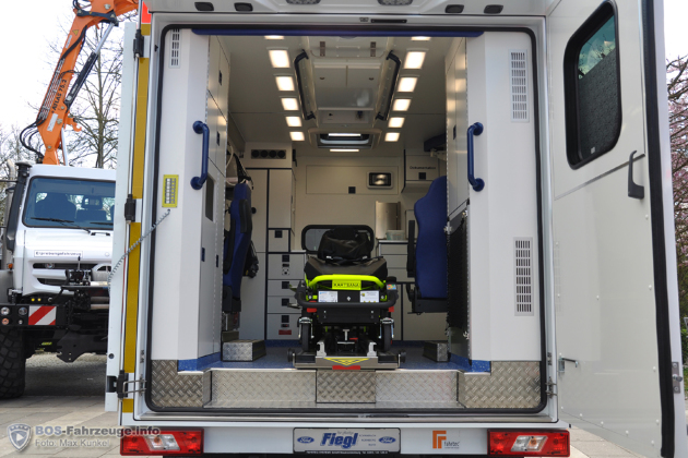 Nach unserem bisherigen Eindruck handelt es sich hierbei um ein durchaus interessantes und innovatives Einsatzfahrzeug, bei dem ein besonderes Augenmerk auf ein ergonomisches Arbeiten und die Sicherheit der Besatzung gelegt wurde. Dies zeichnet sich nicht nur durch die umfassenden Assistenz- und Sicherheitssysteme des Fahrgestells, sondern auch durch die umfassende optische und akustische Warnanlage, durch den massiven Kofferaufbau und die zahlreichen auf eine maximale Ergonomie ausgelegten Arbeitsutensilien aus. Die Gesamthöhe des Fahrgestells liegt beim Ford Transit mit 2.202 mm deutlich niedriger, als beispielsweise bei einem Mercedes-Benz Sprinter oder einem Volkswagen Crafter mit bis zu 2.410 mm, wodurch sich auch eine niedrigere Einstiegshöhe ergibt, die besonders älteren Menschen das Ein- und Aussteigen erleichtert. Jedoch stellt die daraus resultierende, niedrigere Sitzposition auch einen deutlichen Nachteil bei Alarmfahrten dar, da eine höhere Sitzposition auch eine gesteigerte Übersicht im Straßenverkehr bedeutet.