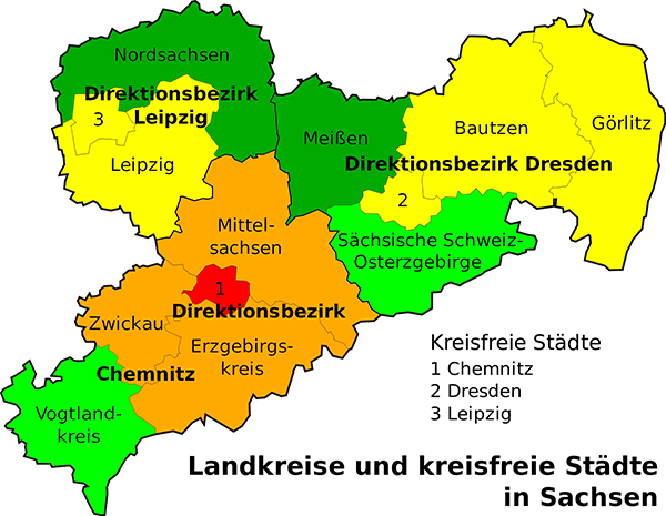 20 neue Datensätze in Sachsen sind erneut eine Steigerung zum vorigen Quartal. Mit dem einzigen Farbwechsel hat sich auch ein weiterer roter Fleck verabschiedet: Der Erzgebirgskreis ist nun orange.