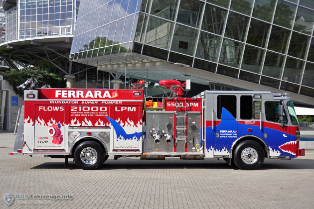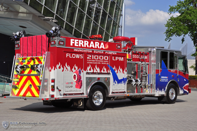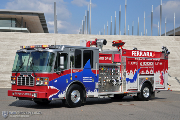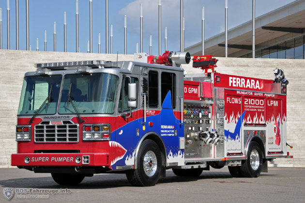 In diesem Jahr hat Ferrara den Inundator Super Pumper, auf einem Ferrara Inferno Custom Fahrgestell mit einem Allison-Automatikgetriebe, welches von einem Sechszylinder Cummins ISX Motor mit einer Leistung von stolzen 447 kW (608 PS) angetrieben wird, gezeigt. Aufbau und Mannschaftskabine sind vollständig in Aluminiumelementen gefertigt, was auch zu einer deutlichen Gewichtsreduzierung beiträgt. Der Fahrgestellrahmen wurde mit einem Ferrara F-Shield Korrosionsschutz versehen, wodurch man ein langlebiges Fahrzeug zu generieren versucht.