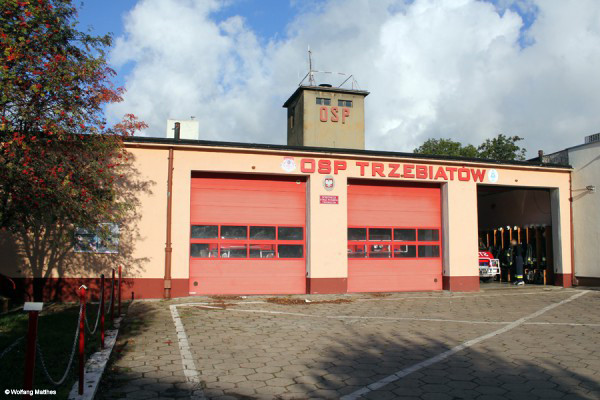 | Beschreibung | Gerätehaus der Freiwilligen Feuerwehr (OSP; Ochotnicza Straż Pożarna) Trzebiatów. Die Stadt mit dem früheren Namen Treptow an der Rega liegt im im Powiat Gryficki (Kreis Greifenberg i. Pom.) in der Woiwodschaft Zachodniopomorskie. Trzebiatów ist Partnerstadt von Wandlitz im Landkreis Barnim. Die FF Trzebiatów ist dem landesweiten Lösch- und Rettungssystem angeschlossen. Dieses wird kurz KSRG (Krajowy System Ratowniczo-Gaśniczy) genannt. Um als FF dem KSRG anzugehören, müssen u.a. Bedingungen bezüglich der Einsatzbereitschaft, Ausrückezeiten, Ausrüstung, Mannschaftsstärke und deren Ausbildungsstand erfüllt werden. Von über 15.800 freiwilligen Feuerwehren in Polen, sind ca. 4.307 an das KSRG angeschlossen (Stand 2013). |