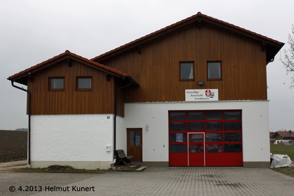 | Beschreibung | Evenhausen gehört zur Gemeinde Amerang im nordöstlichen Landkreis Rosenheim. In der Gemeinde gibt es noch zwei weitere freiwillige Feuerwehren. 1875 wurde die Freiwillige Feuerwehr gegründet. Im 2. Weltkrieg musste sie in München mit aushelfen. Das erste Tragkraftspritzenfahrzeug wurde 1966 in Dienst genommen. 2003 wurde das Gerätehaus erweitert und seitdem ist auch der Schützenverein im Obergeschoss untergebracht. 2007 wurde für das alte TSF ein TSF-W angeschafft. Die Wehr gehört zum Kreisbrandinspektionsbereich II (Wasserburg) |