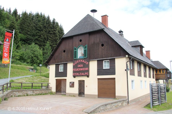 | Beschreibung | Rüsthaus der Feuerwehr Stolzalpe. Die Stolzalpe ist ein 1920 eröffnetes Kinderkrankenhaus, das hoch über Murau gelegen ist. Ab ca. 1930 gab es schon einen Löschdienst. Am 19. März 1936 wurde die Betriebsfeuerwehr Stolzalpe, als erste ihrer Art in der Steiermark gegründet und ständig modern aus- und aufgerüstet. Heute ist die Stolzalpe das Landeskrankenhaus Murtal. Die Garagen der Fahrzeuge befinden sich heute in einem Gebäude direkt neben dem alten Rüsthaus. |