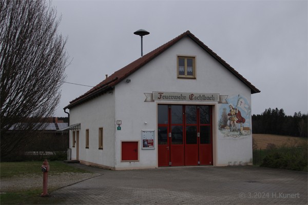 | Beschreibung | Die kleine freiwillige Feuerwehr Eschlbach hat ihr Gerätehaus strategisch günstig gelegen, in der Mitte der Ortschaften von Eschlbach / Maierklopfen / Hörgersdorf. Eschlbach gehört zur Gemeinde Bockhorn, Landkreis Erding. |