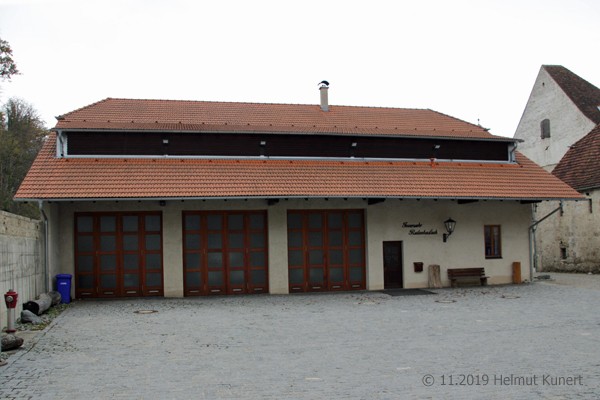 | Beschreibung | Feuerwehrgerätehaus der Freiwilligen Feuerwehr Raitenhaslach, einem heutigen Ortsteil von Burghausen, im oberbayerischen Landkreis Altötting. Der Ort Raitenhaslach, ein ehemaliges Kloster, liegt ca. 5 km südlich von Burghausen, direkt an der Salzach, die die Grenze zu Österreich ist. Das Feuerwehrhaus konnte 2007 bezogen werden. Im ersten Stock fanden die Klosterschützen Raitenhaslach ihr neues Zuhause. Es wurde an Stelle der alten Remise der ehemaligen Brauerei gleich gegenüber dem alten Standort errichtet. |